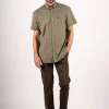 Pre End 35-100182 michigan 5069 Ανδρικό Κοντομάνικο Πουκάμισο Με Βαμβάκι Σε Φαρδιά Γραμμή Λαδί
