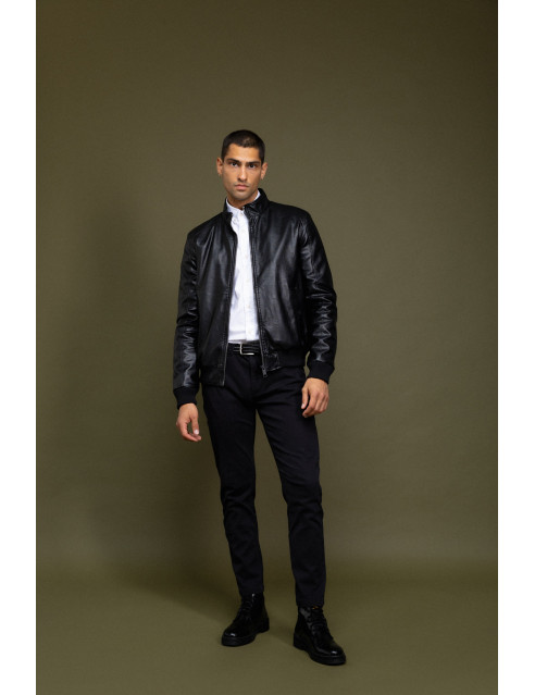 Biston fashion 52-201-108 Ανδρικό Κοντό Πανωφόρι Από Δερματίνη Μαύρο