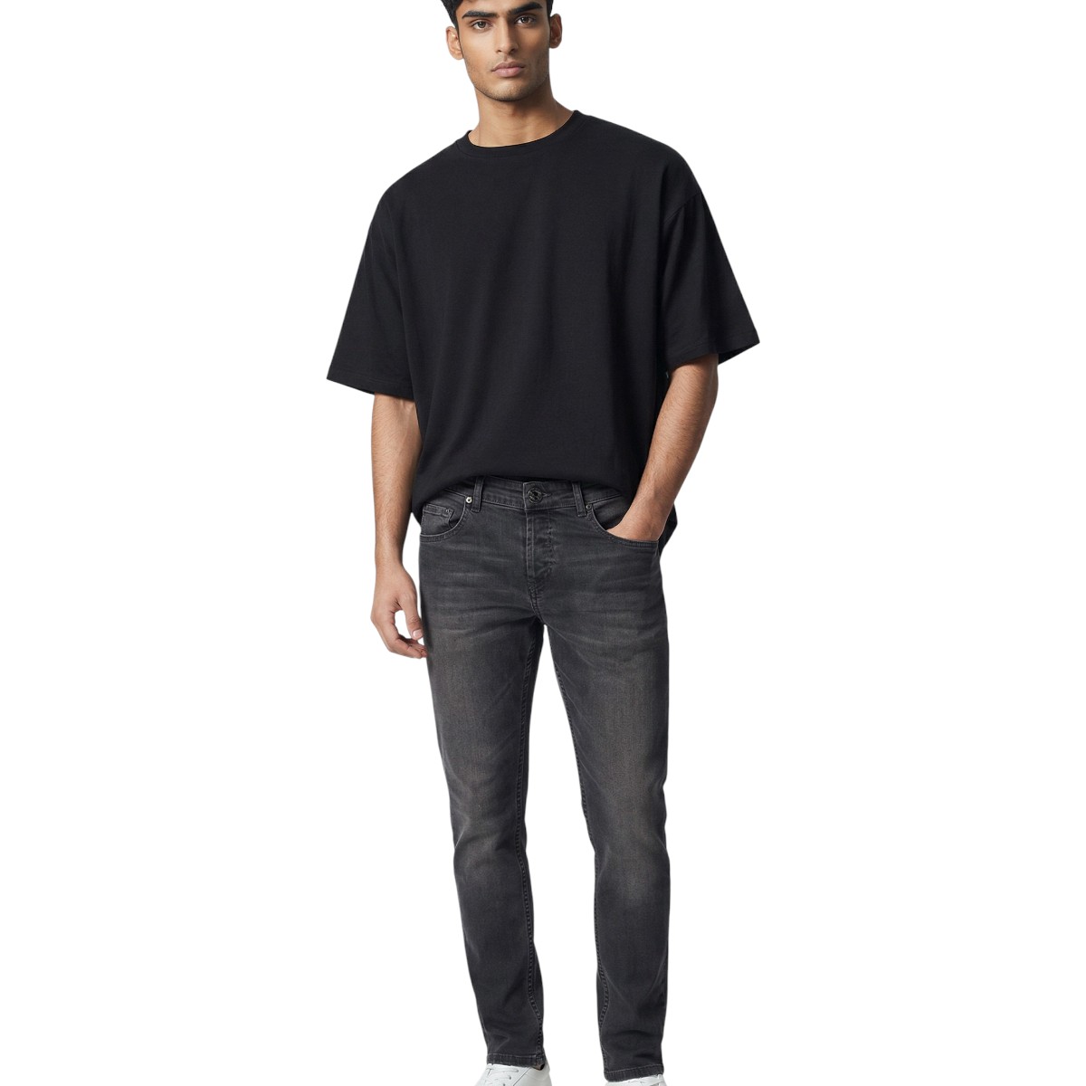 Cabell 333-F Ανδρικό Ελαστικό Παντελόνι Τζίν Βαμβακερό Σε Ίσια Γραμμή Γκρί Σκούρο