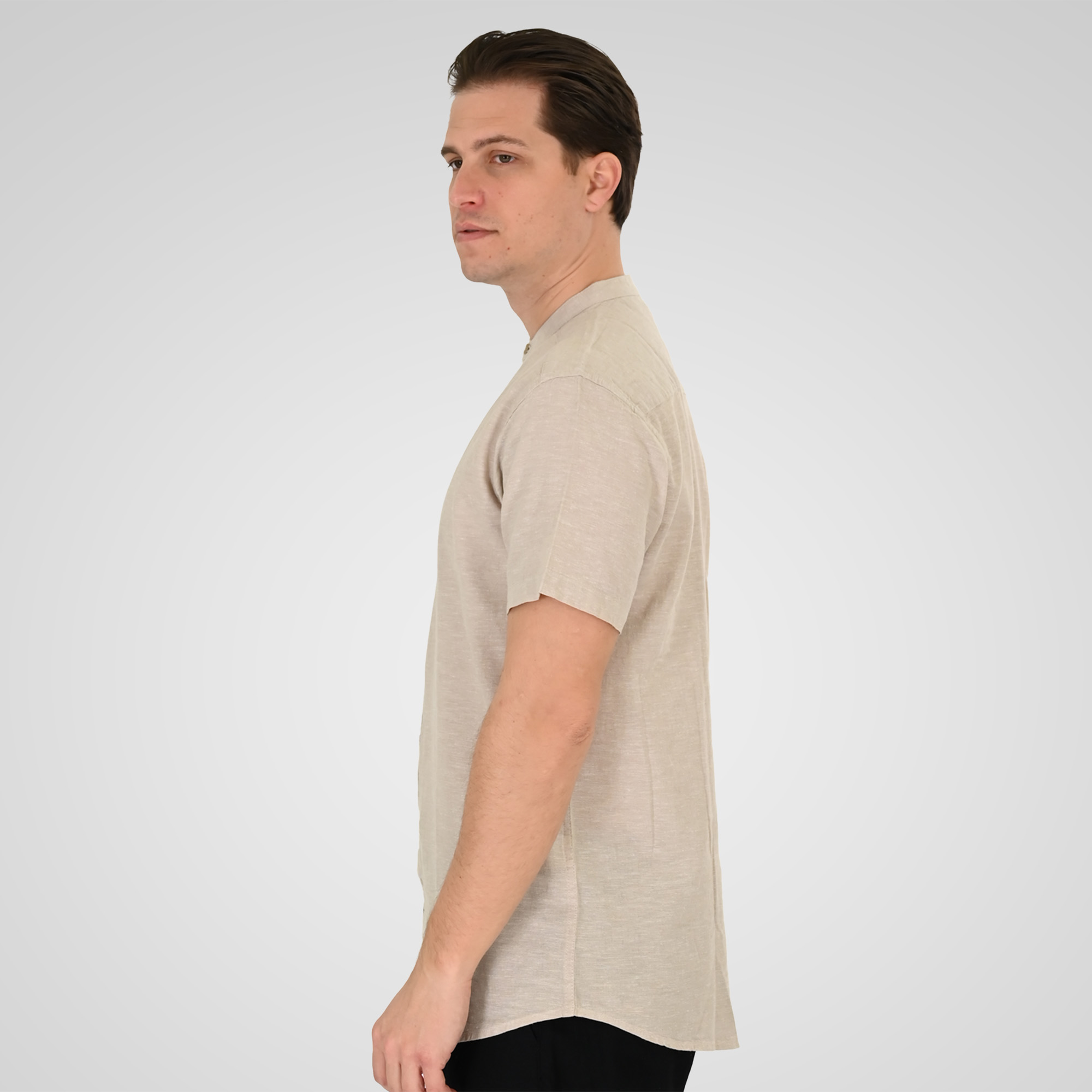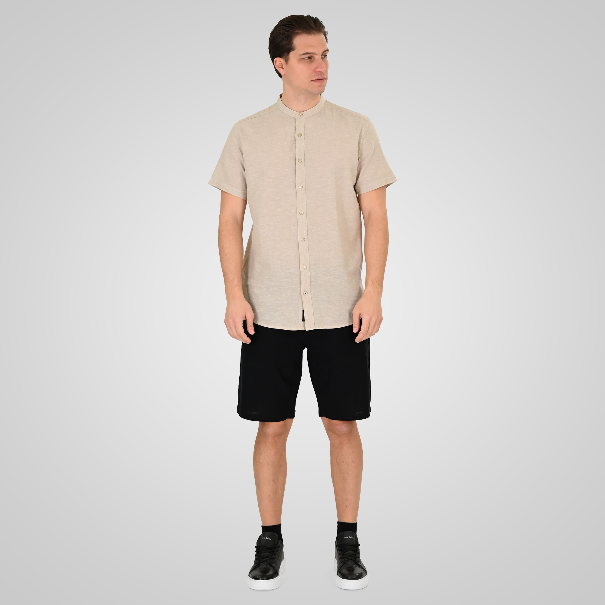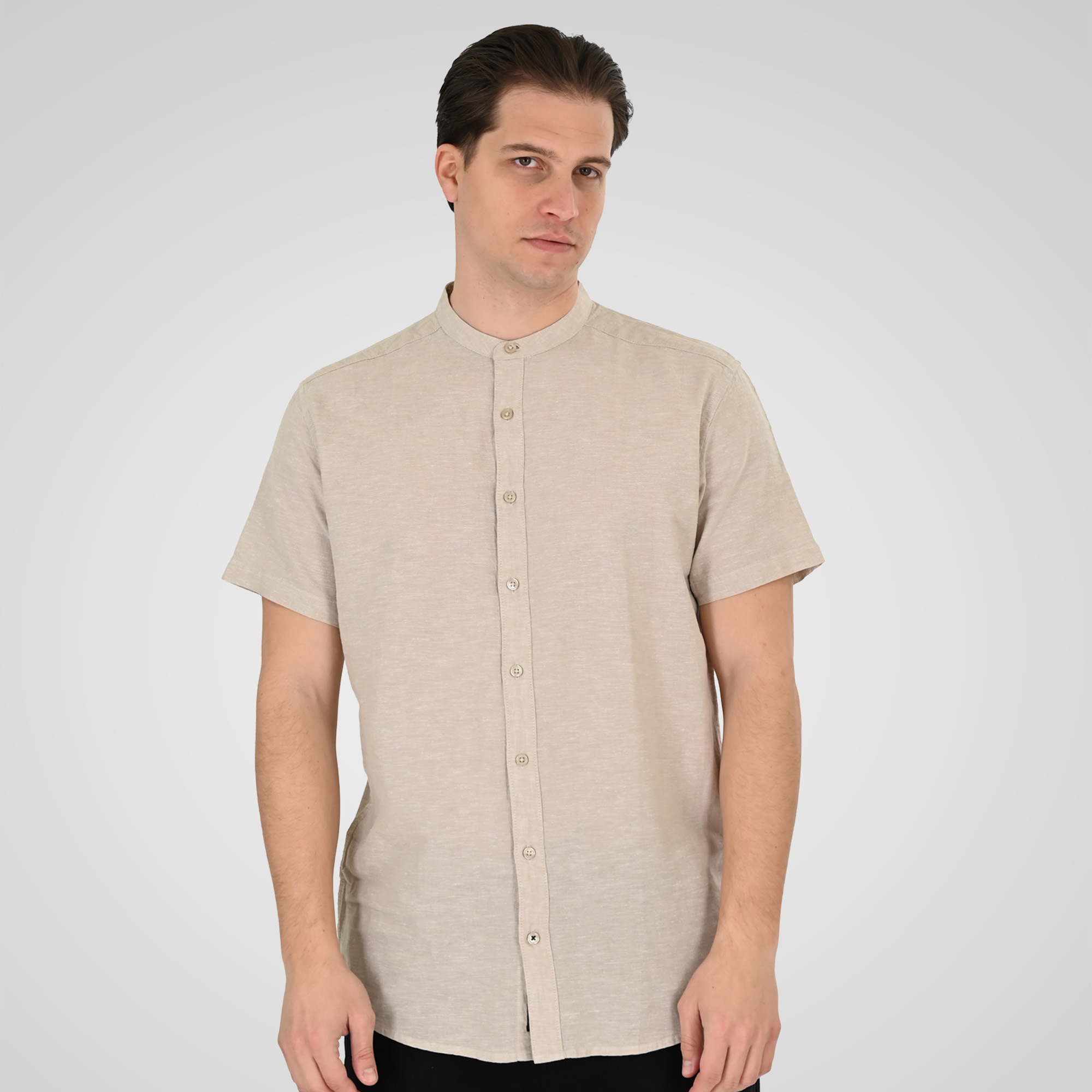 Double 261 GS-5194-Beige Ανδρικό Κοντομάνικο Πουκάμισο Μάο Γιακά Με Λινό Και Βαμβάκι Μπέζ