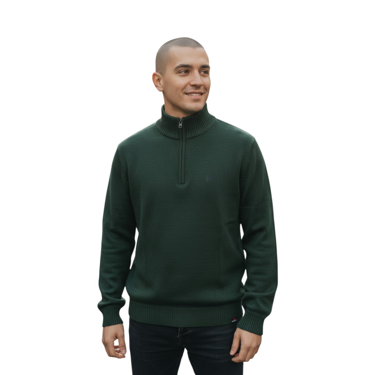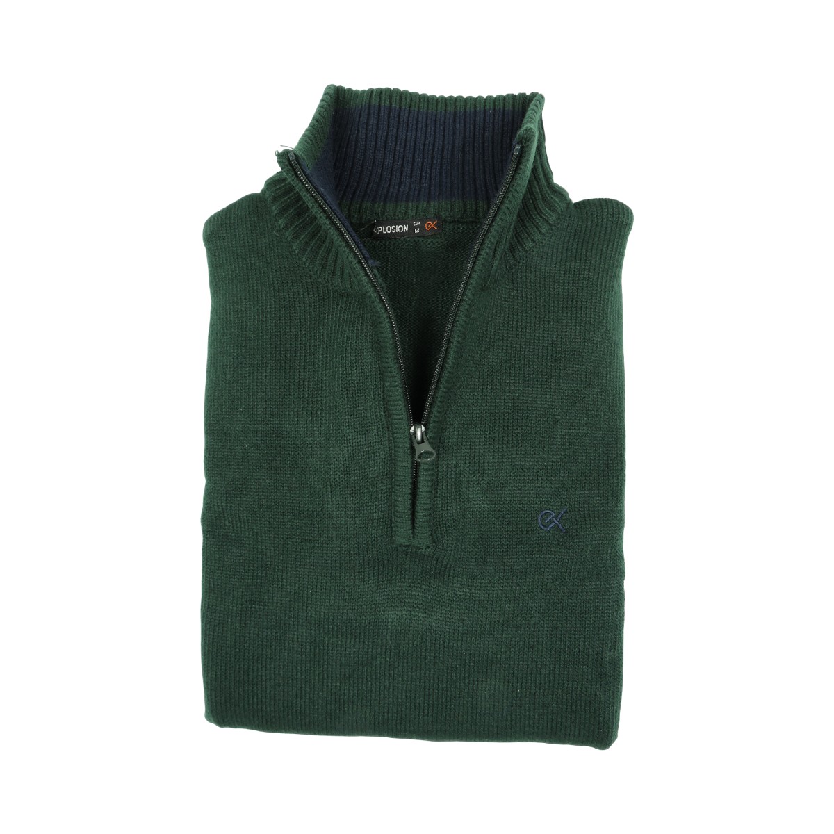 Explosion 1018-2 Ανδρικό Πλεκτό Πουλόβερ Ζίπ Με Φερμουάρ Πράσινο
