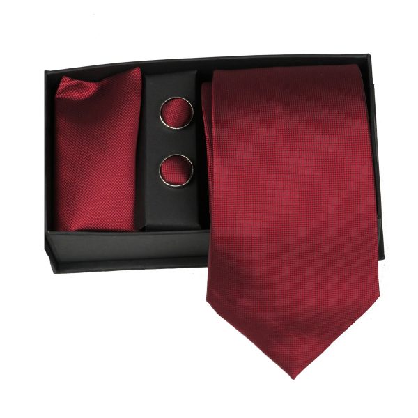 Privato 82-A Σετ Γραβάτας-Μαντήλι-Μανικετόκουμπα Κόκκινο Σκούρο