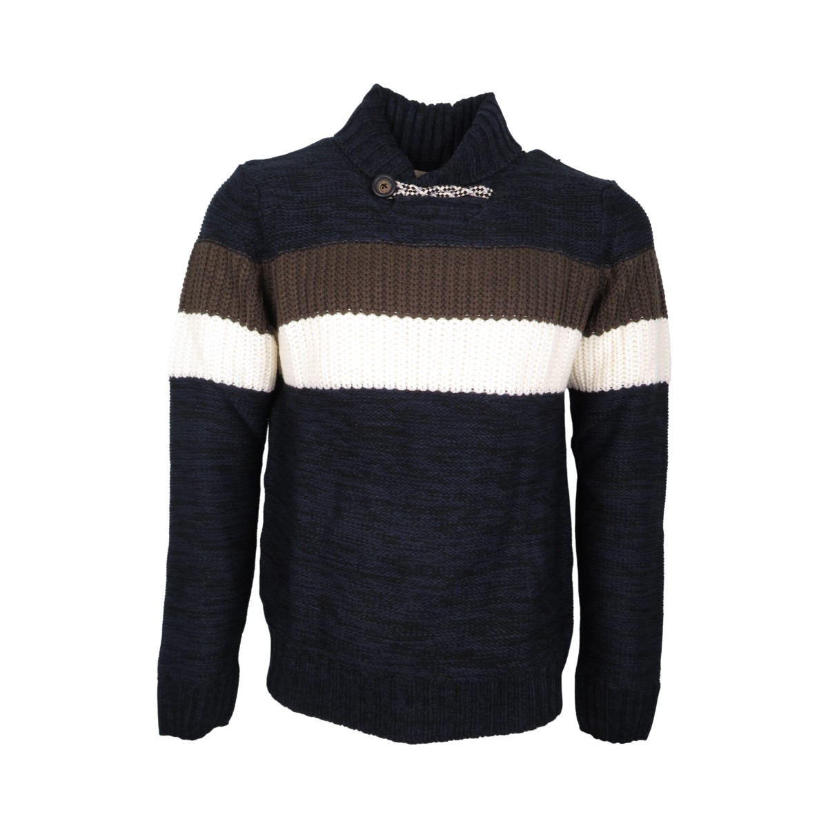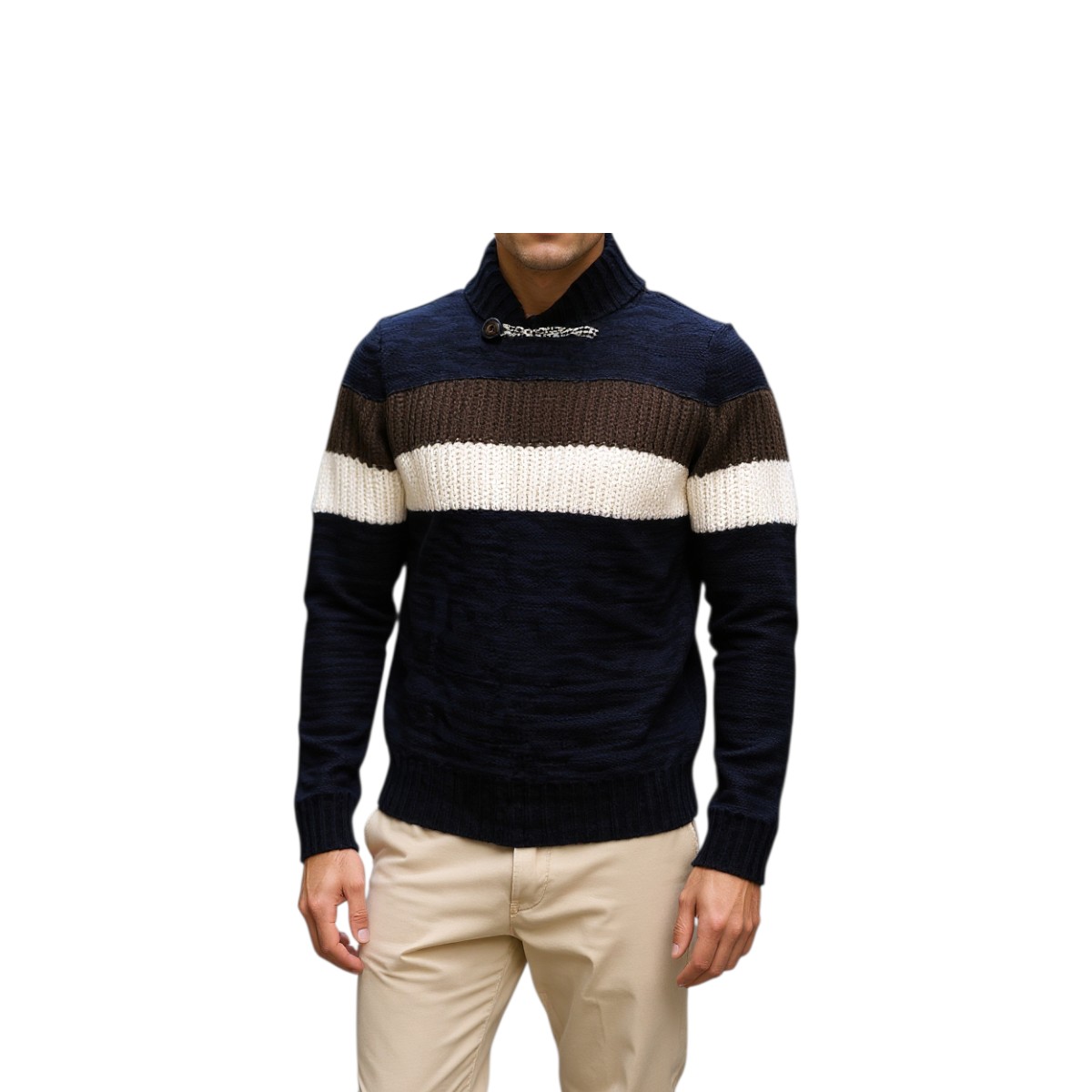 Privato AM-033-1 Ανδρικό Νεανικό Πλεκτό Χοντρή Πλέξη με Σμόκιν Γιακά Μπλέ