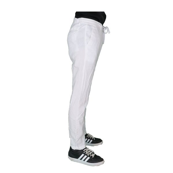 Privato Baker 672-4 Ανδρικό Λινό Παντελόνι Με κορδόνι Στην Μέση Λευκό