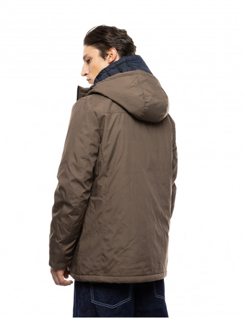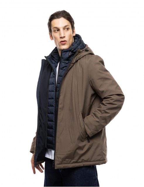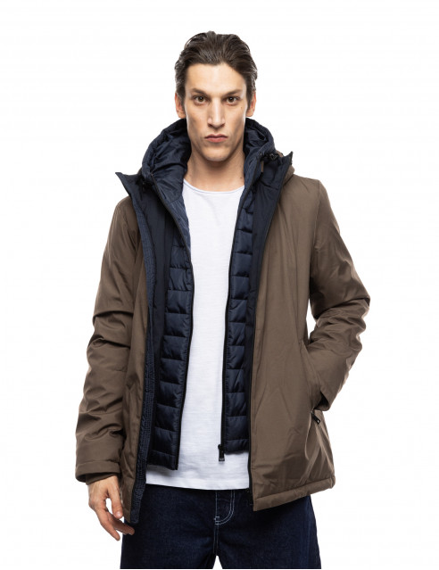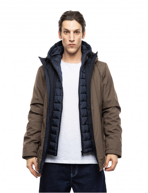 Splendid fashion 52-201-093-2 Ανδρικό Κοντό Μπουφάν Με Δυο Κουκούλες Μια Ενσωματωμένη Και Μια Αποσπώμενη Κάμελ