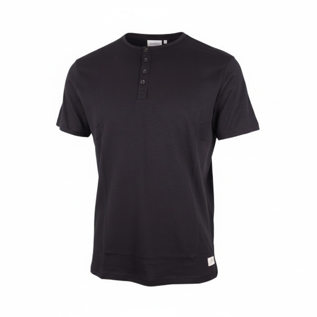 Van Hipster 72304 Ανδρικό Βαμβακερό Μπλουζάκι Με Κουμπιά Και Λαιμόκοψη Μαύρο